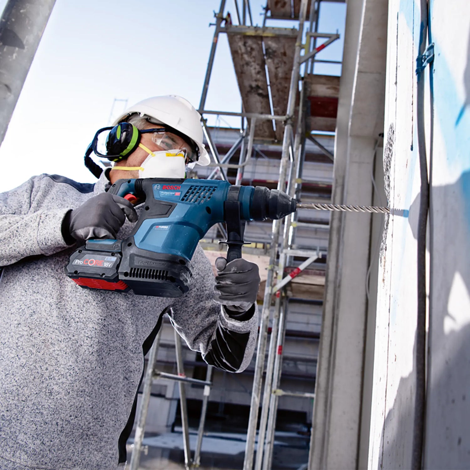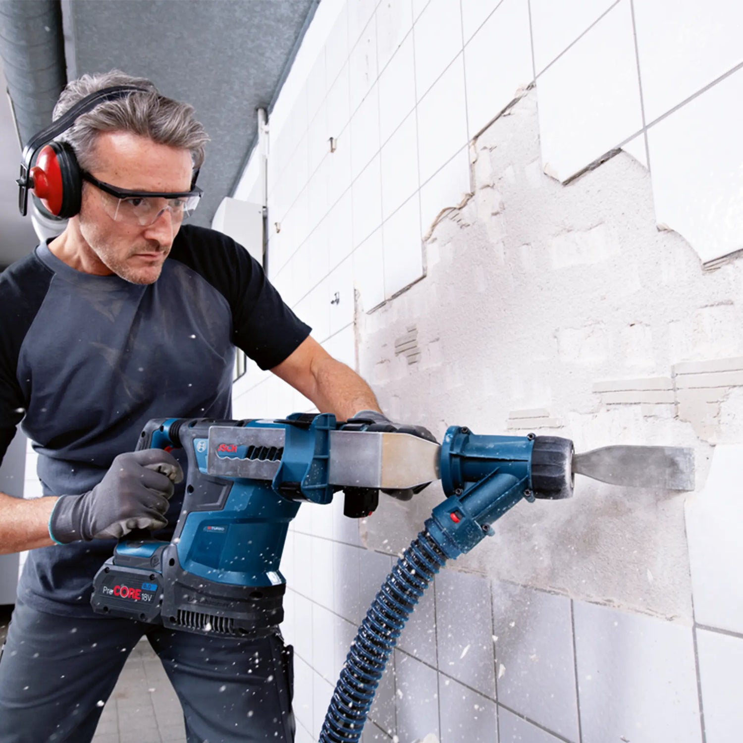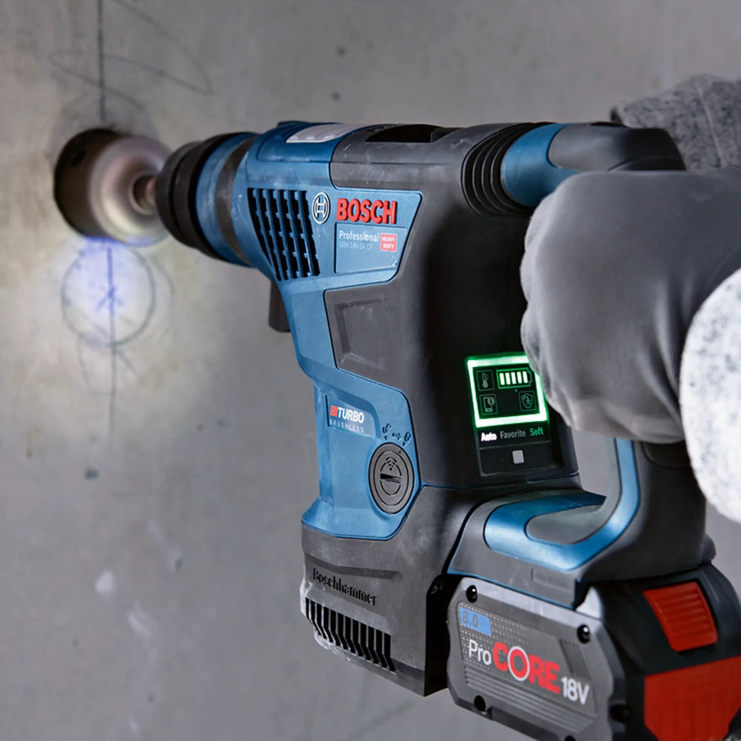 Der Akku-Hammer Bosch GBH 18V-34 CF 8 Ah, der leistungsstärkste auf dem Markt.