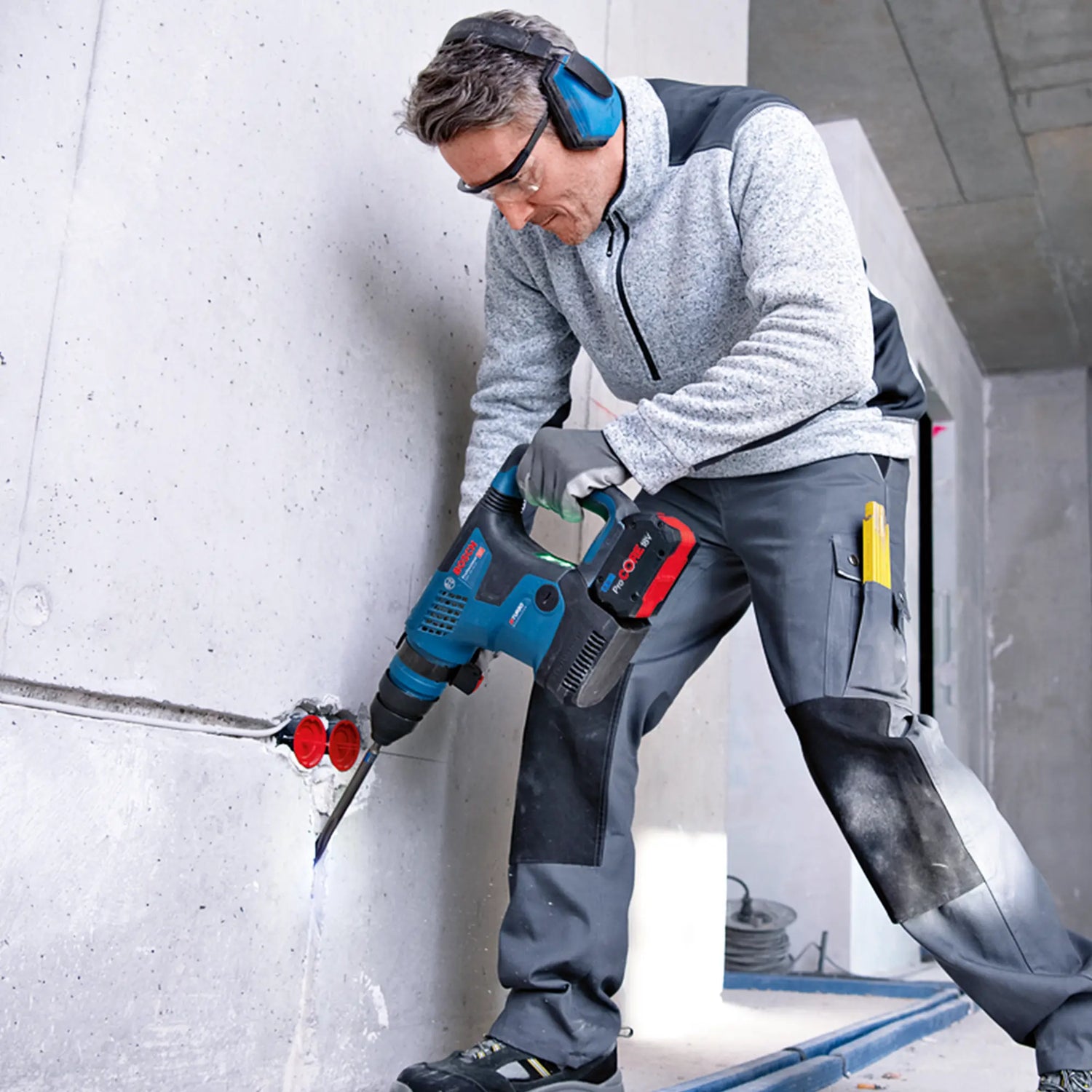 Der Hammer Bosch GBH 18V-34 CF 8Ah ist die ideale Wahl für Profis, die ein leistungsstarkes und vielseitiges Werkzeug für die Arbeit an Beton benötigen. Mit seiner hohen Leistung und fortschrittlichen Steuerung garantiert es maximale Präzision und Langlebigkeit.