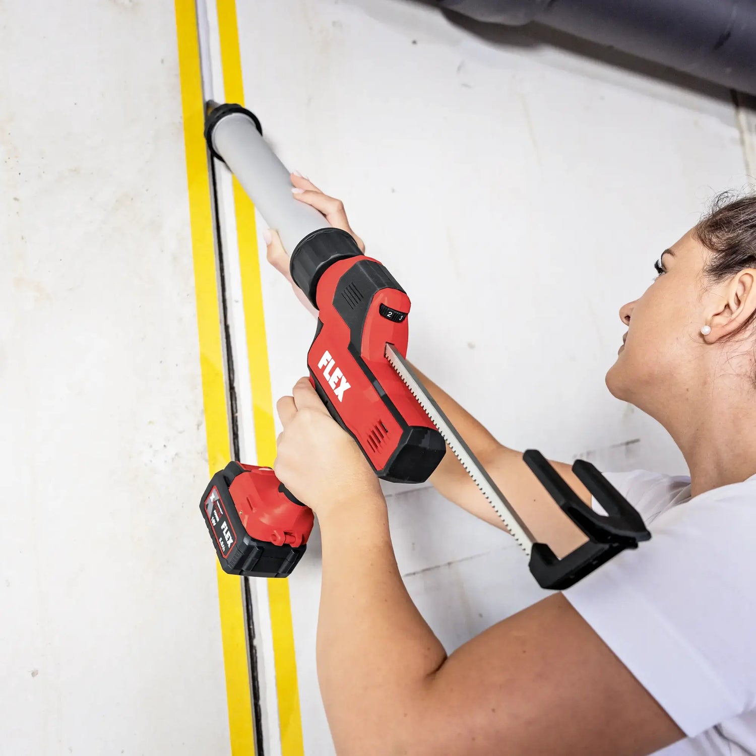 Die Silikonpistole Flex CG 310 18V C Kompaktgerät für 310ml Kartuschen und 300-600ml Beutel.