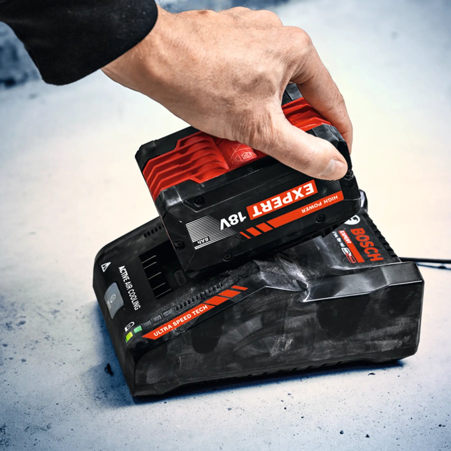 Starterset Bosch Professional EXBA18V-80 18V 8Ah mit 2 Akkus und ultraschnellem Ladegerät. Extrem lange Laufzeit und 39 Minuten Ladezeit für maximale Produktivität.